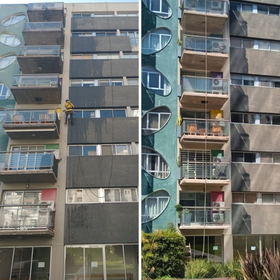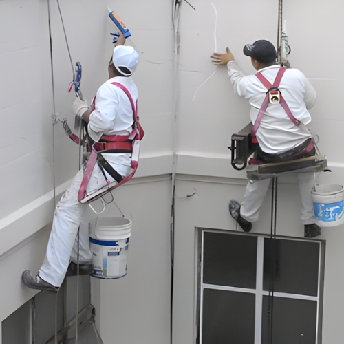 Aplicación de sistemas de pintura mediante acceso por cuerdas, garantizando terminaciones uniformes, adherencia óptima y durabilidad en superficies verticales de difícil acceso.